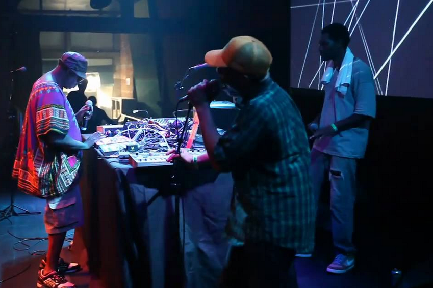 An APC live show is as hands-on as hip-hop gets. Never mind the backing tracks – the quartet (no MegMan this time) have a work table in Whelan’s that is a hardware fetishist’s wet dream — a mass of synths, laptops, controllers, drum machines and samplers. Earl Blaize kicks off with some forgotten sci-fi theme tune looping, ‘I’m just a lonely space girl’, before Beans walks on, lining up a few beers at his feet. Priest and Sayyid then take their positions for their usual electro warm-up, bashing keys and turning dials. Sayyid – who takes on the hype-man role – chants out “Fluorescent Black Dublin” before Lay Me Down kicks in “with paramilitary precision”. Played back-to-back with Arrhythmia single Dead In Motion, it’s a knockout opening. As the three MCs holler “more fire/ more fire/ MORE FIRE”, there’s already pogoing in the front row – Saturday night is alright for rapping.