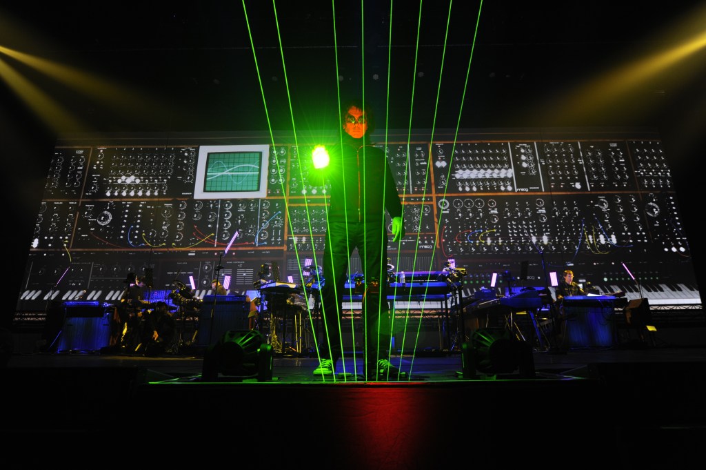Of course he’s got an arsenal of electro toys too – from the daft mini splash cymbal (used to comical effect on Magnetic Fields II), to the keytar he straps on to channel Steve Vai for the overblown solo on Oxygene V. He even wrestles with the theremin for some 1950s B-movie sound effects. And then, holy shit, he fires up the legendary Laser Harp, using his palms to slice into the green beams, first for Rendez-Vous III then Rendez-Vous II – a Gothic choral piece so ridiculously epic it seems to cram about 20 albums, a few novels and the odd opera into its 15 minutes.
