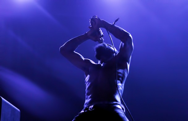 The pogo energy is mainlined back to the ATP Stage as sonic Semtex, as Death Grips take to the stage under midnight-blue light as Stefan ‘MC Ride’ Burnet writhes, contorts and flaps his arms like a demented Ray Harryhausen winged monster. They’re missing drummer Zach Hill but producer Flatlander has it covered – two out of three are bad as fuck. Lost Boys is sliced in two by Guillotine, and Death Grips’ frightening live reputation is sealed immediately in a brown note sub-bass line. By some miracle of sound engineering, the Sacramento duo’s sledgehammer kick drums and bass drills sound like they’re bouncing off sweaty club walls, cocooning the ATP Stage in a blast of the old ultraviolence. The vicious crack den dub of Come Up and Get Me oozes into the electro stomp of I’ve Seen Footage, and Hacker’s frantic industrial EBM kicks us all into next week.