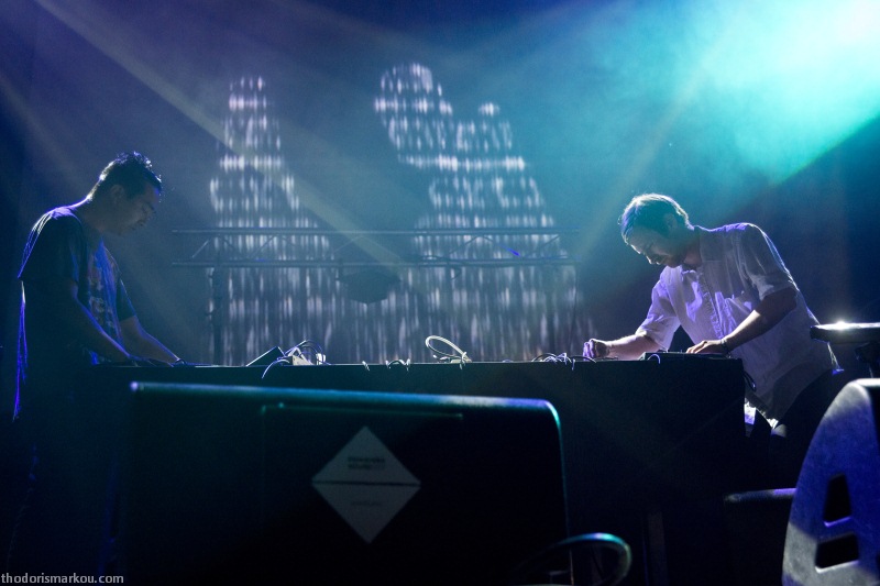 Brainboxes rearranged, we hang on at ATP to catch an epic set from Fuck Buttons (below), who are still largely trading on their 2010 album, Tarot Sport, with Surf Solar and Olympians still sounding like full movie soundtracks channeled into each of their 10 minutes. The duo have further honed their earlier clattery distortion into a state of euphoric relentless build-ups, as always facing each other across a table, looking like they’re engaged in a game of pinball doubles, with a huge silver ball spinning behind them. They drop new track The Red Wing, their first in four years, and its kaleidoscopic breaks latch on to Flight of the Feathered Serpent as the fractal backdrop seal the deal.