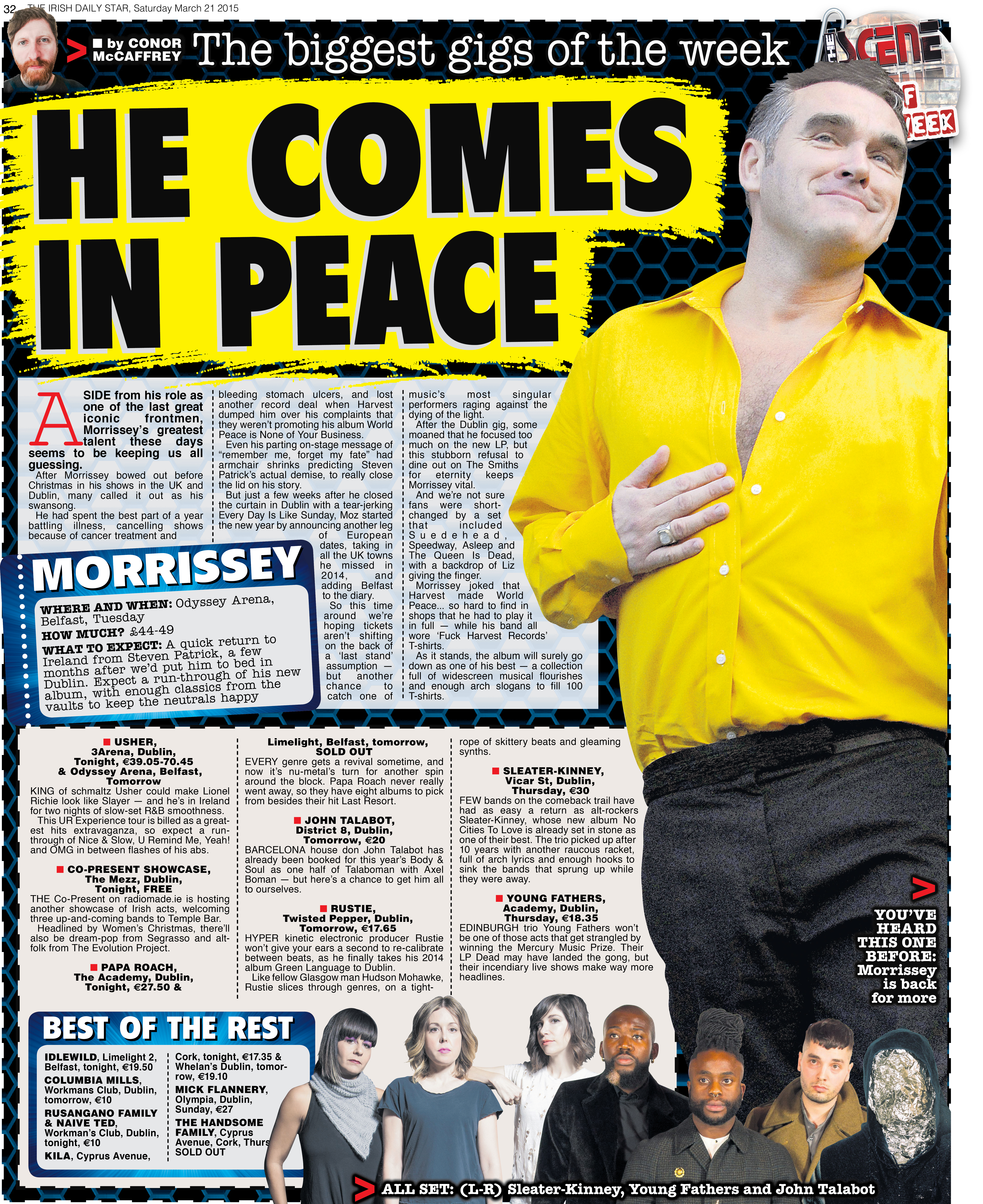 Even his parting on-stage message of “remember me, forget my fate” had armchair shrinks predicting Steven Patrick’s actual demise, to really close the lid on his story. But just a few weeks after he closed the curtain in Dublin with a tear-jerking Every Day Is Like Sunday, Moz started the new year by announcing another leg of European dates, taking in all the UK towns he missed in 2014, and adding Belfast to the diary.