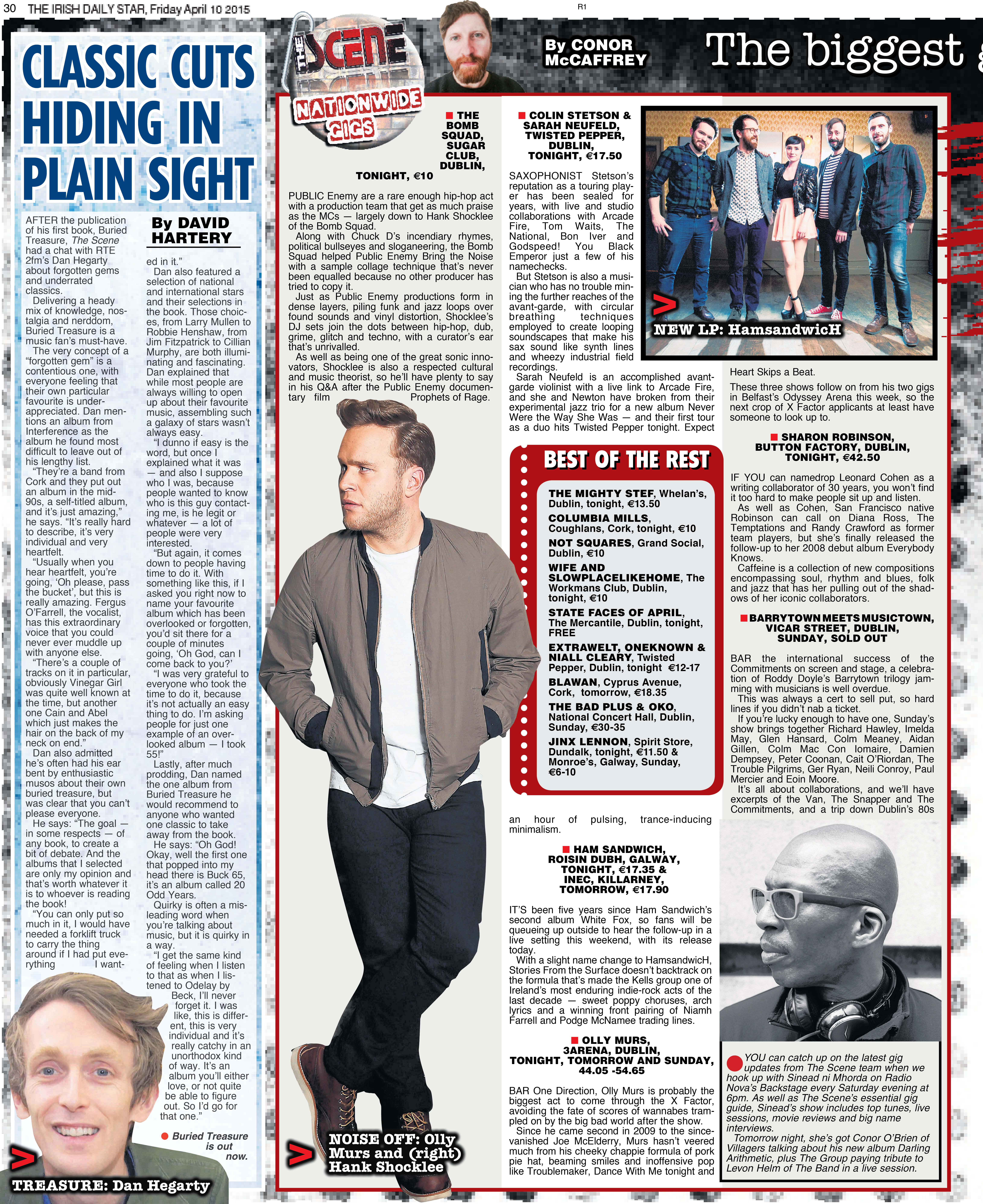 BAR the international success of the Commitments on screen and stage, a celebration of Roddy Doyle’s Barrytown trilogy jamming with musicians is well overdue. This was always a cert to sell put, so hard lines if you didn’t nab a ticket. If you’re lucky enough to have one, Sunday’s show brings together Richard Hawley, Imelda May, Glen Hansard, Colm Meaney, Aidan Gillen, Colm Mac Con Iomaire, Damien Dempsey, Peter Coonan, Cait O’Riordan, The Trouble Pilgrims, Ger Ryan, Neili Conroy, Paul Mercier and Eoin Moore. It’s all about collaborations, and we’ll have excerpts of the Van, The Snapper and The Commitments, and a trip down Dublin’s 80s and 90s.