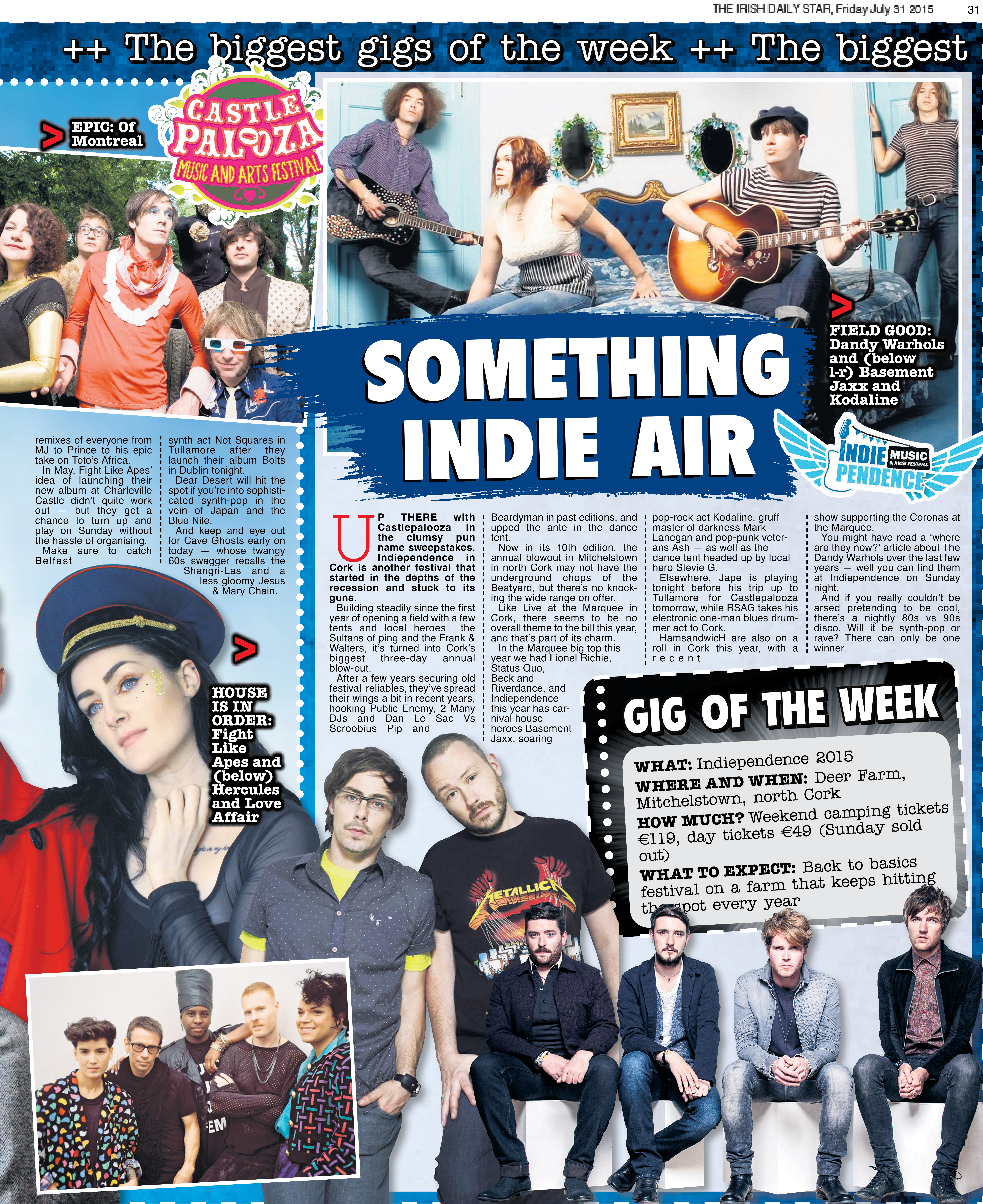 Up there with Castlepalooza in the clumsy pun name sweepstakes, Indiependence in Cork is another festival that started in the depths of the recession and stuck to its guns.