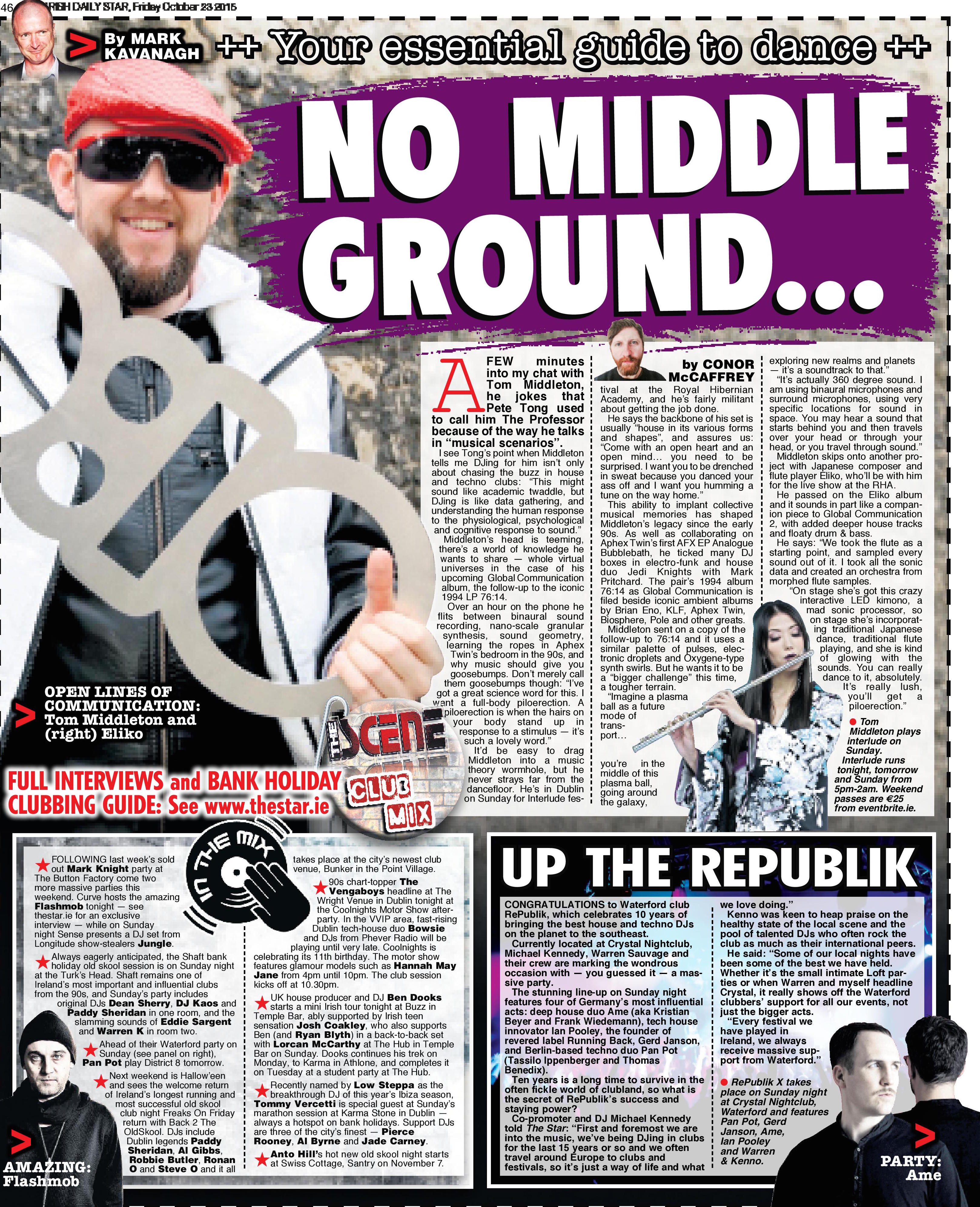 WITHIN a few minutes of chatting to Tom Middleton, he jokes that Pete Tong used to call him The Professor because of the way he talks in “musical scenarios”.
